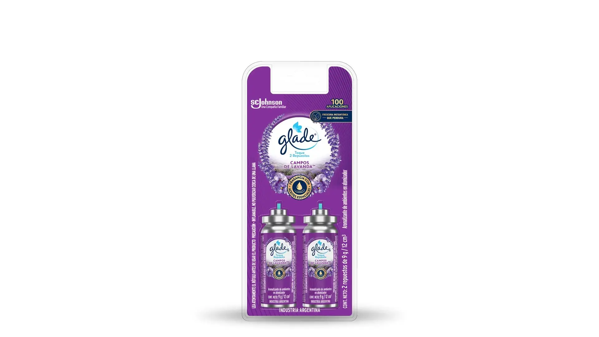 Toque repuesto Glade en sus fragancias Campos de Lavanda y Placer Floral y Frutos Rojos